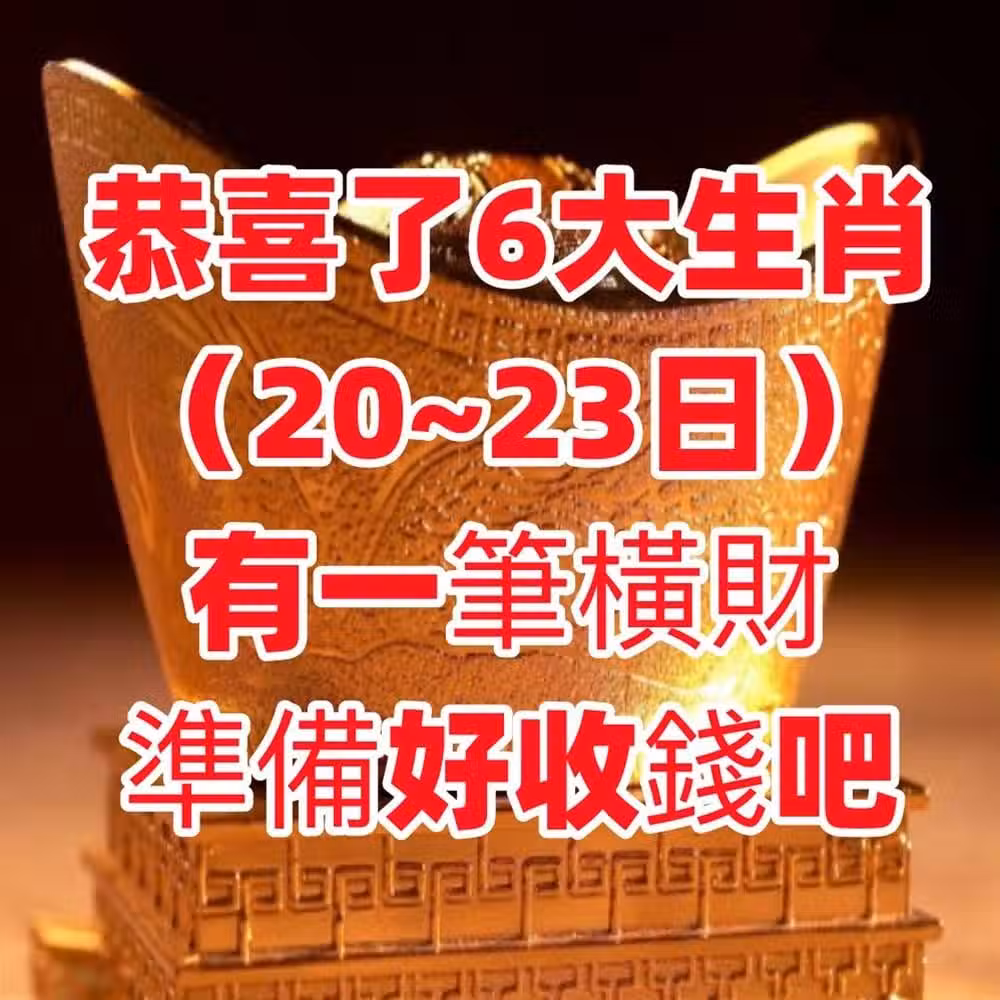 恭喜了6大生肖,在未來三天(20~23日)即將有一筆橫財!準備好收錢吧!