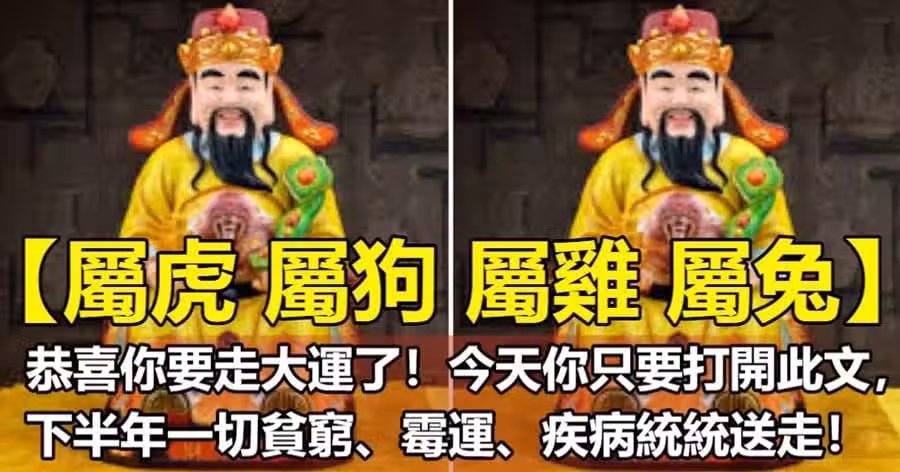 【屬虎 屬狗 屬雞 屬兔】恭喜你要走大運了!今天你只要打開此文,下半年一切貧窮、霉運、疾病統統送走!