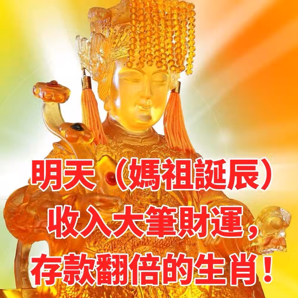 明天(媽祖誕辰)收入大筆財運來,存款翻倍的生肖!