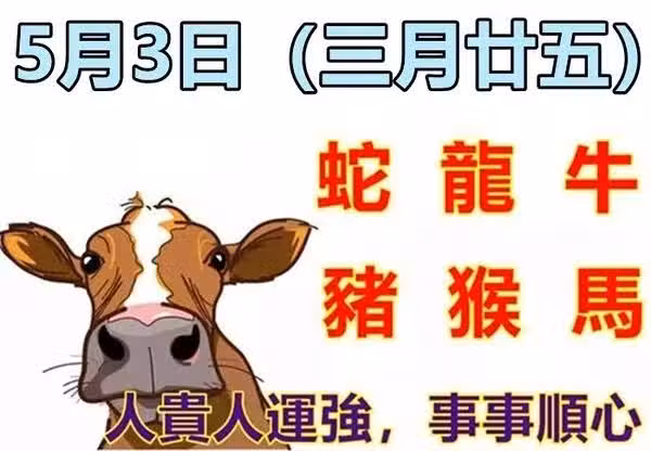 小運播報:2024年5月3日,星期五,農曆三月廿五,法定工作日。