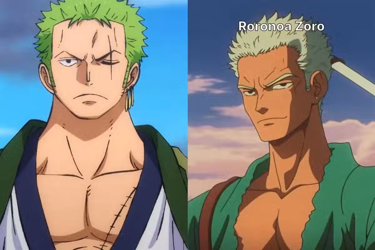 索隆的新形象在吉卜力風格下呈現更加細膩的面部輪廓和表情。他的眼神燃燒著堅定的意志,身上的刀痕彰顯出他的歷練和勇氣。穿著簡潔而優雅的武士服裝,展現出一股深沉而英雄的氣息。