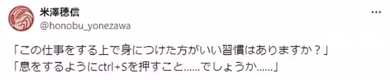 而他最近面對「從事作家工作應該要養成的習慣」這個提問,就表示沒有比「按ctrl+s」更重要的習慣了!