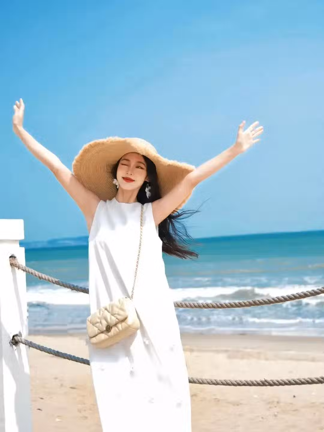 穿裙子拍照,可以讓自己極交叉腿自然站立,然後兩手自然放在自己的身側兩邊,轉頭微笑看著遠方,這個姿勢可以在不經意間拍出裙子照片的魅力,輕鬆拍得又高又美又有氣質,大家學起來。