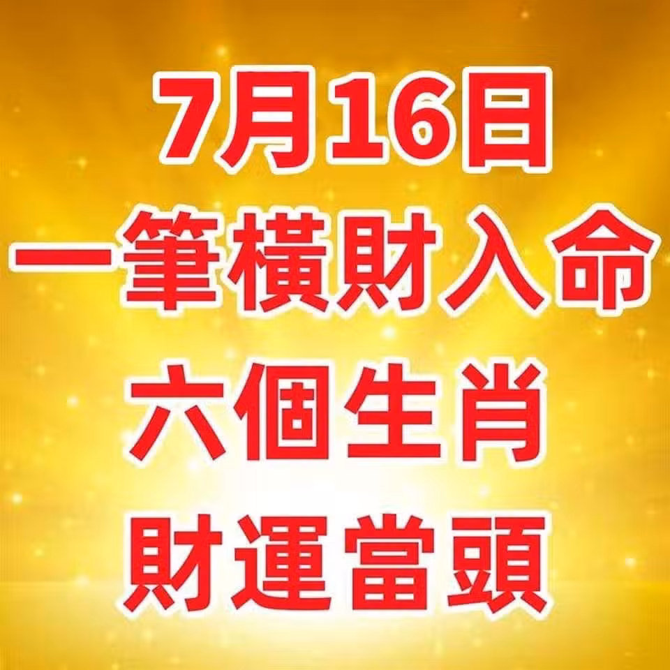7月16日,會有一筆橫財入命,六個生肖財運當頭快來接!