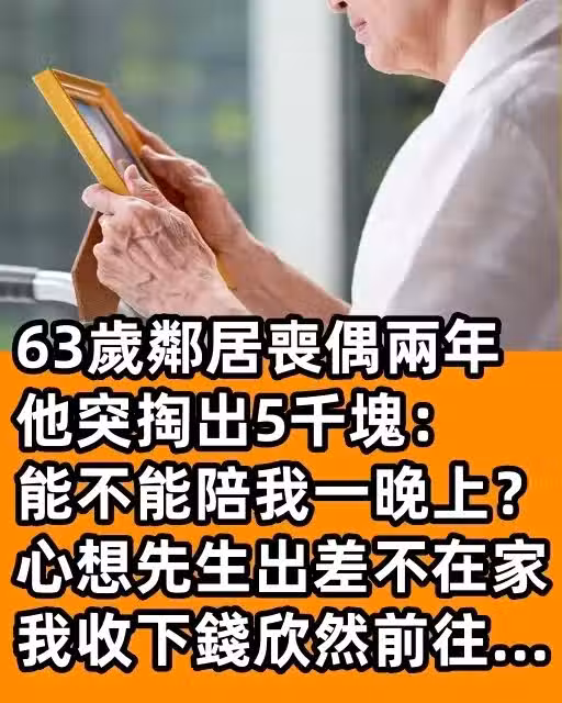 63歲鄰居喪偶兩年,他突掏出了5千塊:「能不能陪我一晚上?」心想先生出差不在家,我收下錢欣然前往…