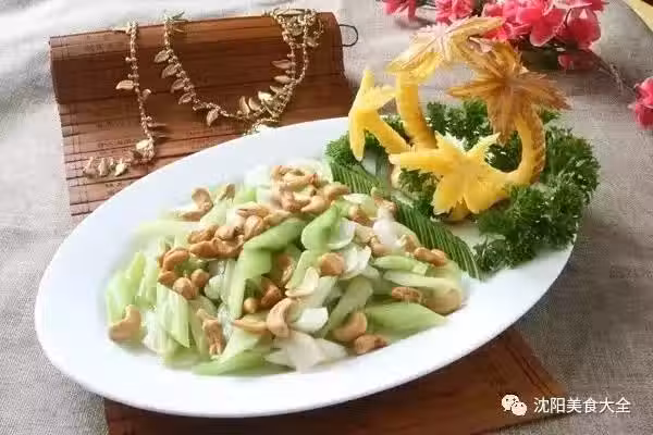 (1)西芹洗凈削皮切成菱形塊;百合掰開洗凈;腰果用油炸熟備用;