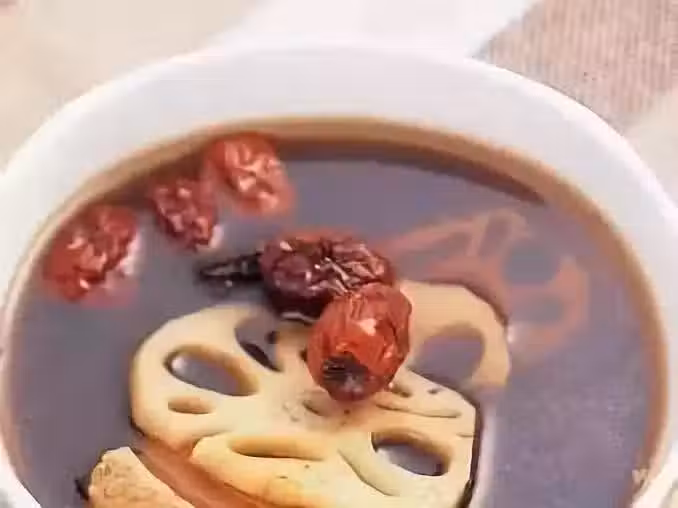 材料:蓮藕1斤,髮菜1兩,紅豆2兩,蜜棗5粒,姜2片