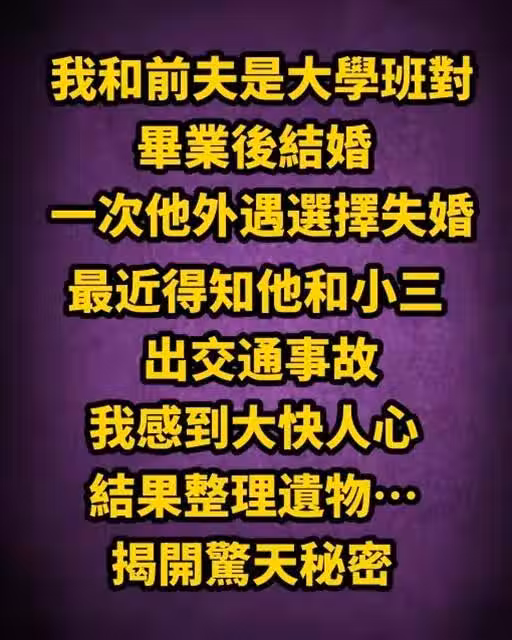 我和前夫是大學班對,畢業後結婚,一次他外遇選擇失婚,最近得知他和小三出交通事故,我感到大快人心,結果整理遺物…揭開驚天秘密