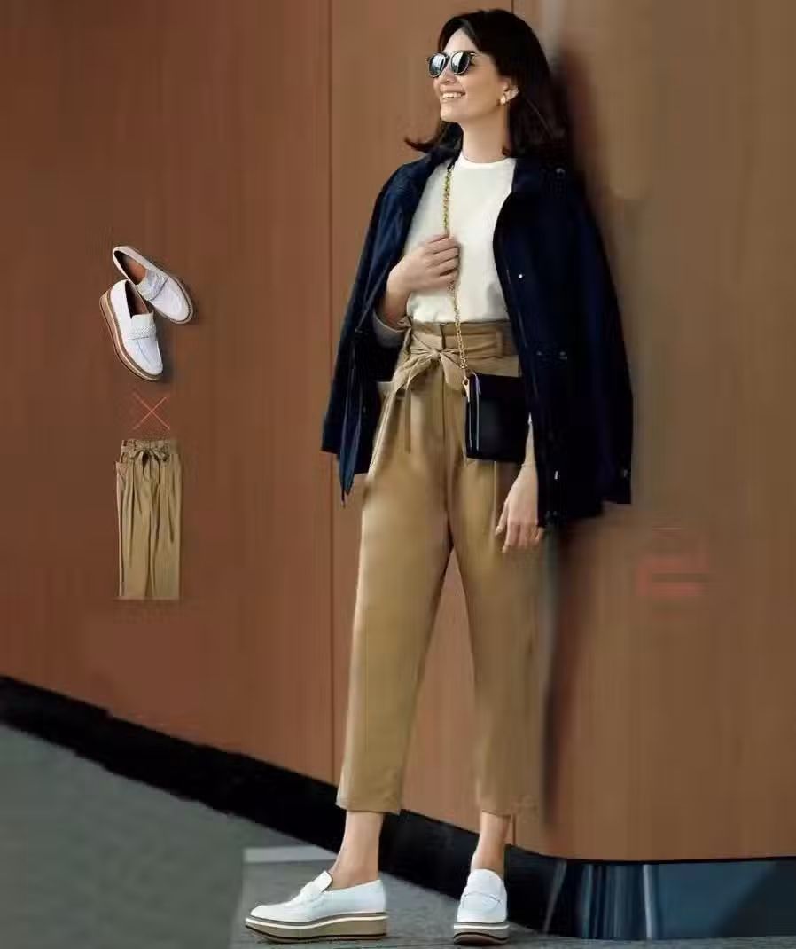 對於上了年紀的女士們來說,緊身的服裝帶不來性感,反而會帶來拘謹的小家子氣,下圖的女生就是硬把自己套在了緊身小腳褲的裝扮中,幾分拘謹和呆滯之外還暴露了很多不良的身型,正確穿衣之下就立馬感覺她其實是一個纖瘦高挑的身型。