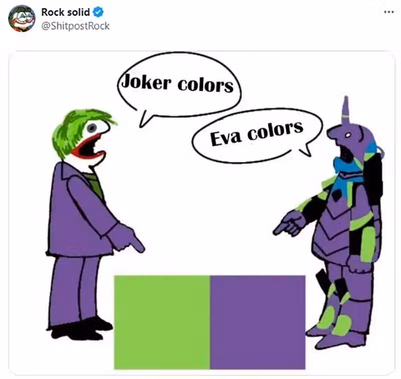 這位名叫「Rock solid」的X網友,最近提出了綠紫配色究竟算是《蝙蝠俠》系列的小丑的代表色,還是《新世紀福音戰士》的初號機的代表色的話題,隨即引發熱烈議論!