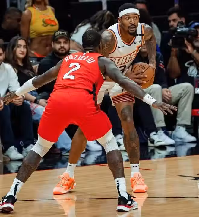 其實太陽相比上賽季並沒有本質的升級,即使杜蘭特在場上時他們也經常需要打到關鍵時刻,他們的凈勝分並不好看,只是杜蘭特總是能化身死神擊敗對手,一旦杜蘭特缺陣,太陽就淪為一支魚腩球隊。無論是布克還是比爾都沒有帶隊能力,很多時候他們還沒有拿著底薪合同的瓊斯在場上作用大。