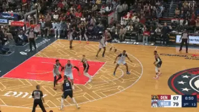 還是和力量型內線對抗,可以說單就身體對抗來說瓦蘭丘納斯完全不輸約基奇。事實上,本季至今對位59回合下瓦蘭限制約基奇24投10中。相對來說,效果還是不錯的。