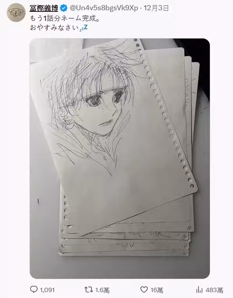 冨樫老師近況更新 作品《獵人》完成數話分鏡稿,未來至少還有50話的內容準備刊登