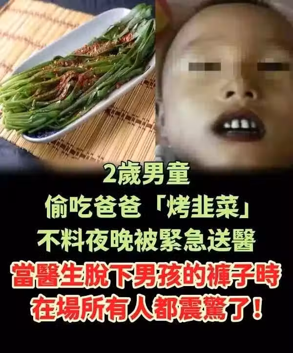 2歲男童偷吃爸爸「烤韭菜」 不料夜晚被緊急送醫 當醫生脫下男孩的褲子時 在場的所有人都震驚了!