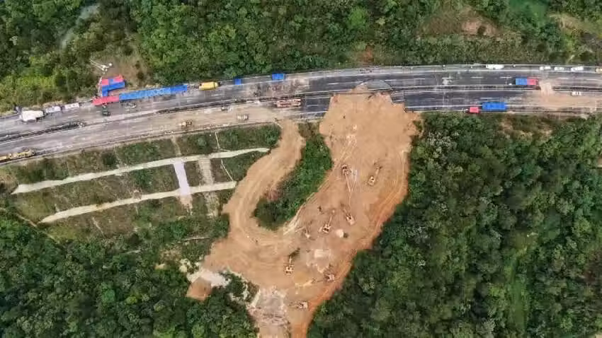 2024年5月1日,廣東梅大高速公路發生塌方事故,往茶陽路段出口方向2公里左右的路面突然塌陷,塌陷路面長約17.9米,面積約184.3平方米。