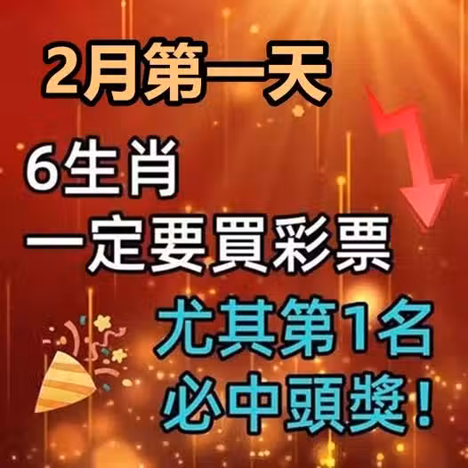 2月第一天,6生肖一定要買彩票,尤其第1名必中頭獎!