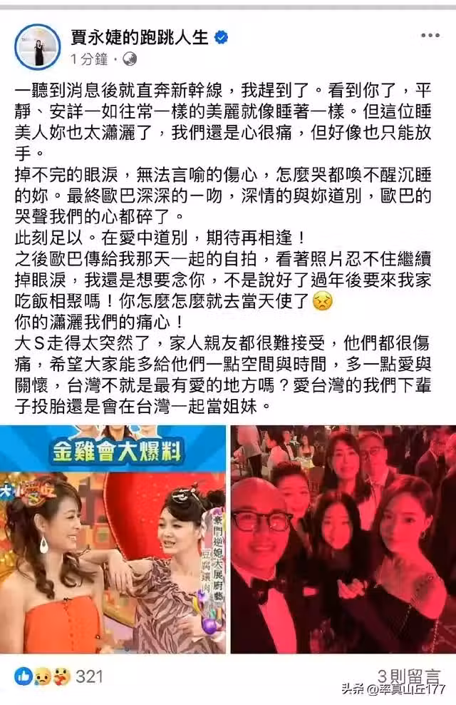 結合大S好友賈永婕的發文內容和酒店房間布局來看,大家有沒有感覺得哪裡有些不對勁,面對東京附近有著如此多的醫療醫院,愣是沒有把大S從死亡的邊緣拉回來,難道大S 在臨走前真的是平靜而去?
