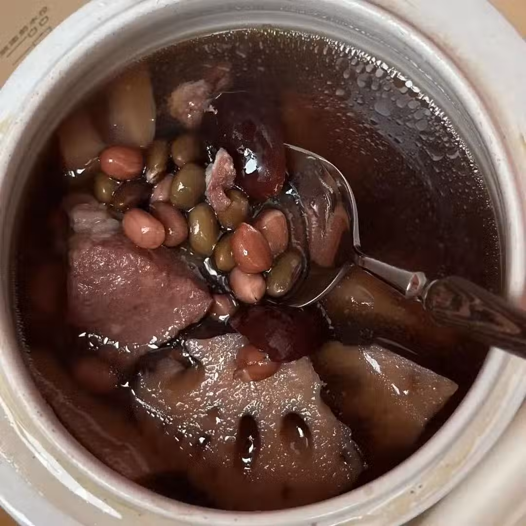 這款粥能補充豐富的蛋白質、鐵質和纖維,適合氣血兩虛、體力疲乏的朋友。蓮藕搭配紅豆和黑米,能有效調理脾胃,補充氣血。紅糖和桂花則增加了甜美口感,溫補效果明顯。