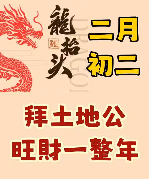 二月初二是土地公生日,傳統習俗將這天稱為「頭牙」、「龍抬頭」,這一天被認為是農曆新年的第一個好日子,也是一個重要的節日。