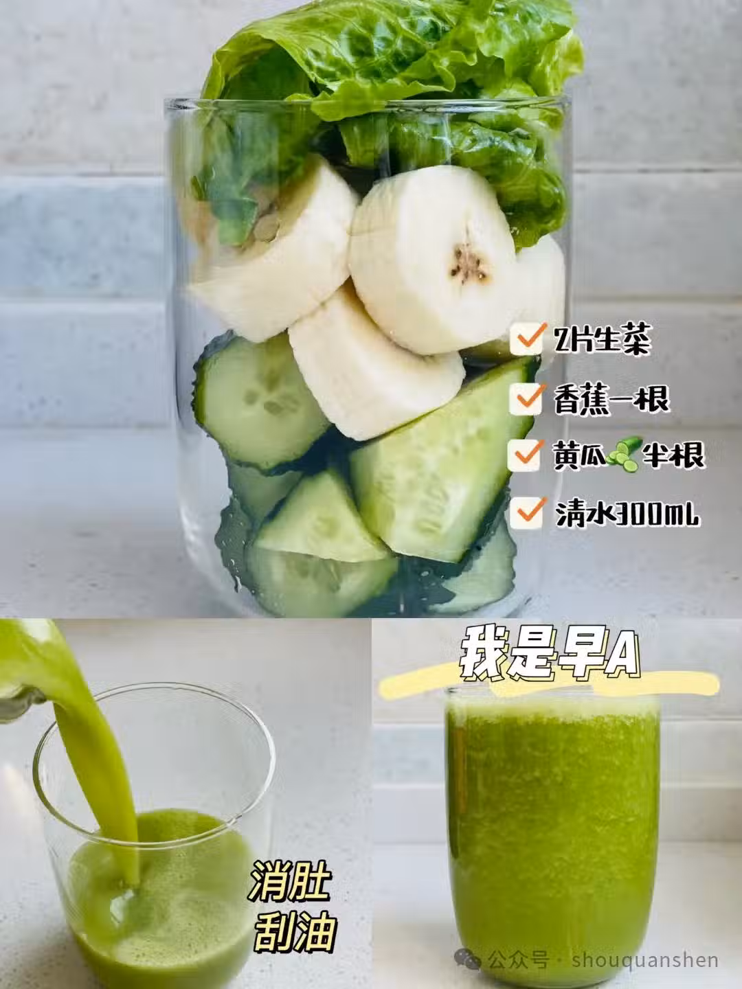這款果蔬汁專門針對腹部脂肪,幫助消肚腩、減肚子。黃瓜含有豐富的水分,能夠幫助排毒,消腫;香蕉富含鉀元素,幫助維持體內水分平衡,減少水腫;生菜含有豐富的纖維,能促進腸胃蠕動,幫助消化。每天一杯,幫助你減輕腹部贅肉,輕鬆擁有平坦的小腹。