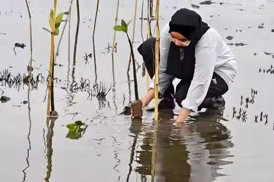 #印尼人民在淤泥中種下紅樹林幼苗,這或許也是種下希望
