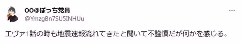 「《機動戰士Gundam GQuuuuuuX》第一集就出現地震速報的字幕,讓大叔我想起30年前左右的EVA第一集了。」