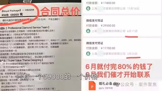 但婚慶公司因覺得「這單價格低廉」(現場布置、司儀、化妝、攝像、調音師等共計58999 --約台幣26.6萬),只派了一名工作人員前往現場。