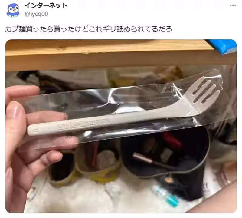 《日清杯麵專用叉》不識貨的網友痛批拿到歪掉的叉子,下一秒馬上改口稱讚太神了