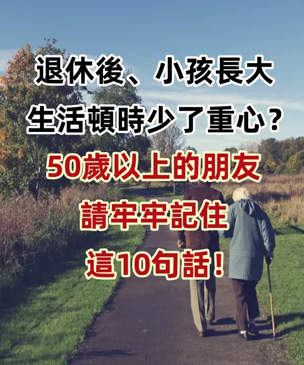 退休後、小孩長大,生活頓時少了重心?50歲以上的朋友,請牢牢記住這10句話