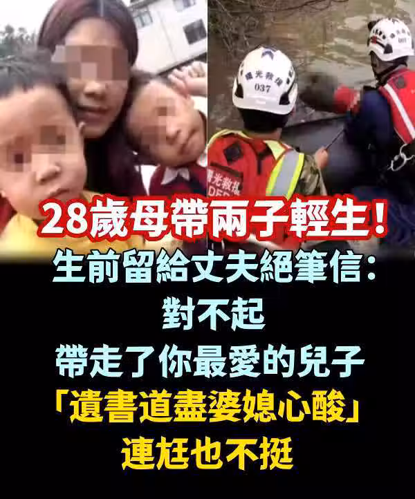 28歲母帶兩子輕.生! 生前留給丈夫絕筆信:「對不起,帶走了你最愛的兒子…」 「遺書道盡婆媳心酸」 連尪也不挺