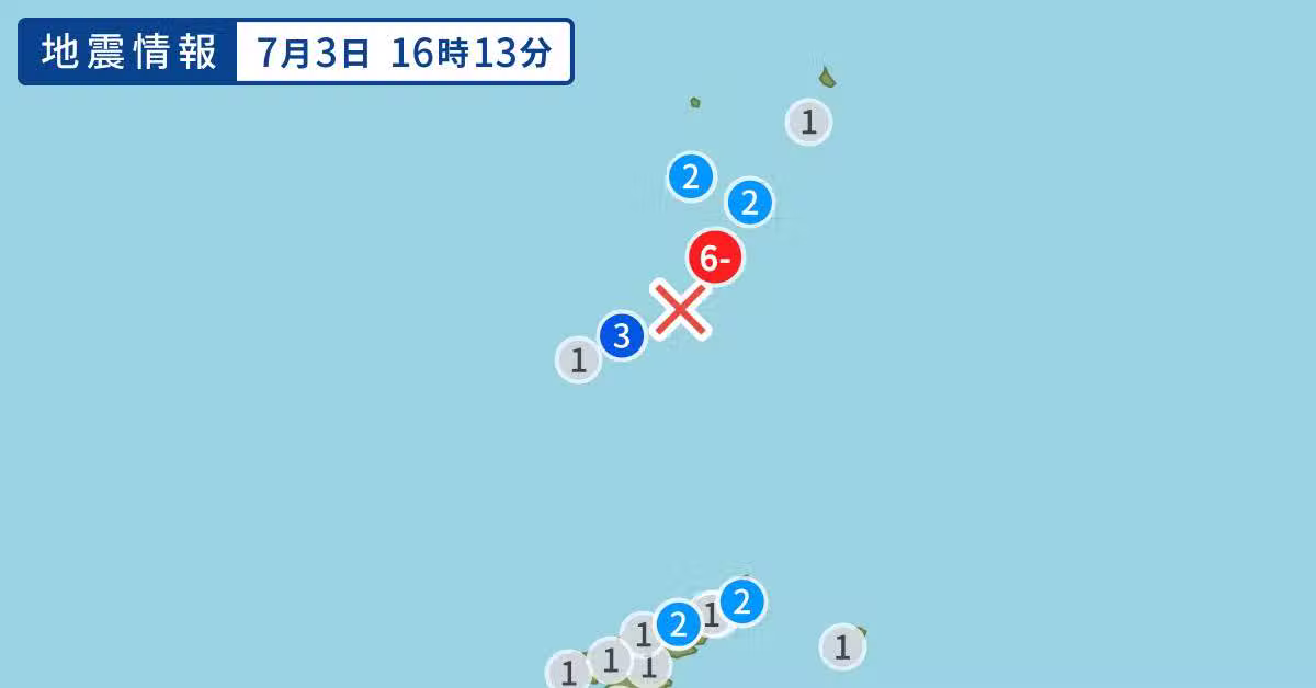 吐噶喇列島位於九州以南、琉球群島以北,近兩周頻繁地震,截至昨(2)日為止共發生近千起,雖然規模、震度幾乎都不大,但仍偶爾會出現規模5以上的地震,居民也都被晃到睡得不安穩,十分苦惱。
