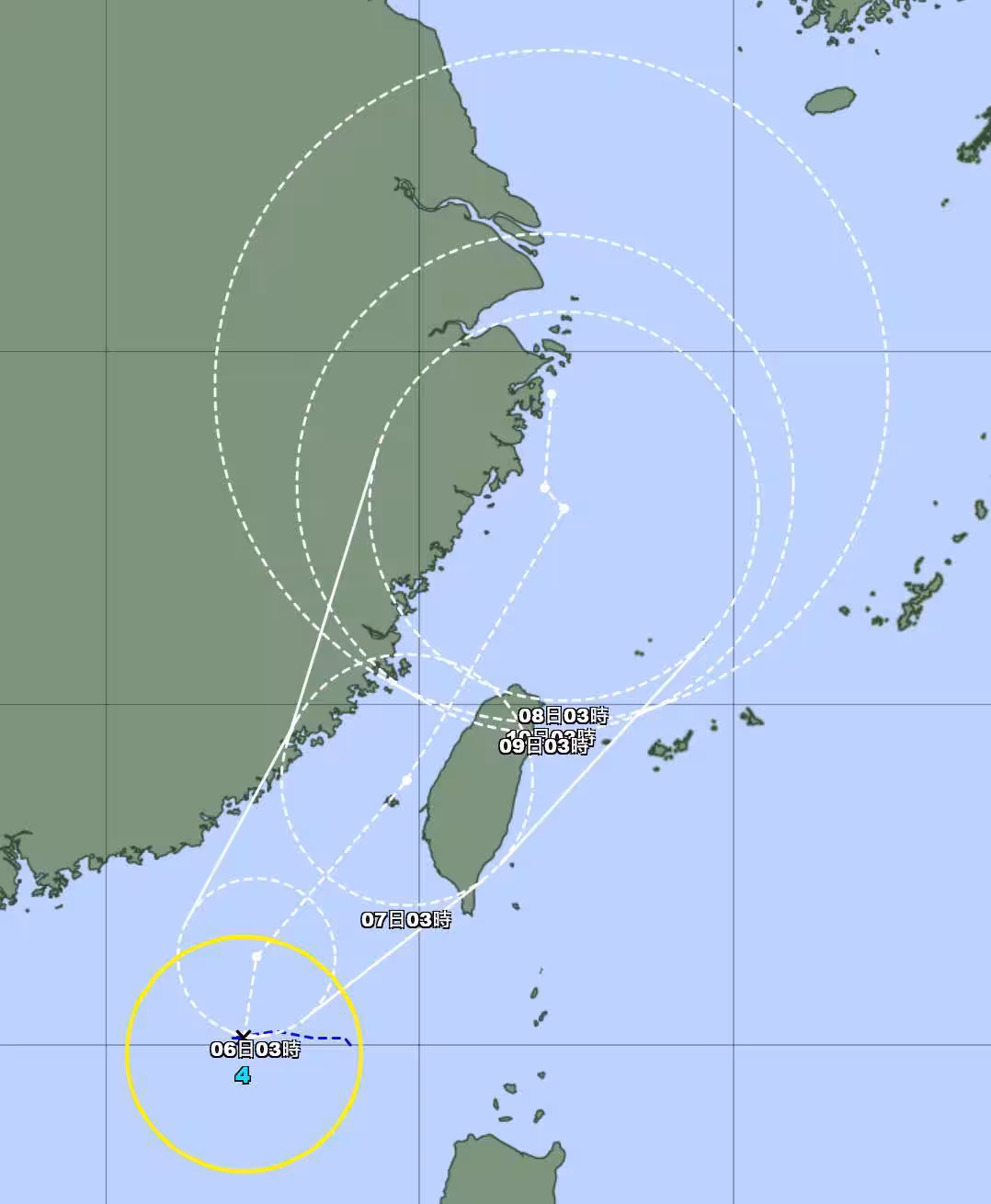 最新颱風路徑曝光!中央氣象署指出,颱風通過台灣海峽北上機率高,也有進入台灣陸地,或由台灣東方海面北上的可能性,最接近台灣的時間為周日(6)、下周一(7)上半天,為台灣帶來明顯風雨。