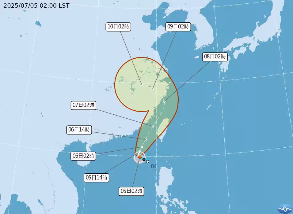 位於呂宋島西北方海面的熱帶性低氣壓,已於今(5)日凌晨2時增強為第4號輕度颱風「丹娜絲」,中央氣象署表示,預計周日至周一上半天從台灣海峽北上的機率較高,也不排除有進入台灣陸地的可能性。