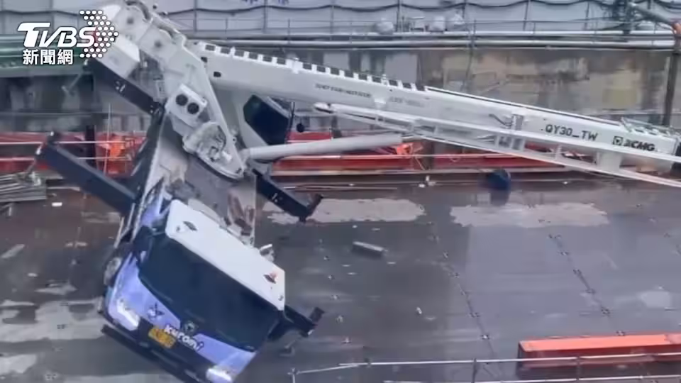 獨/起重機翻覆工人跳車逃生!伸臂砸地面 驚險瞬間全錄下