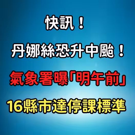 快訊/丹娜絲恐升中台! 氣象署曝「明午前」16縣市達停課標準!