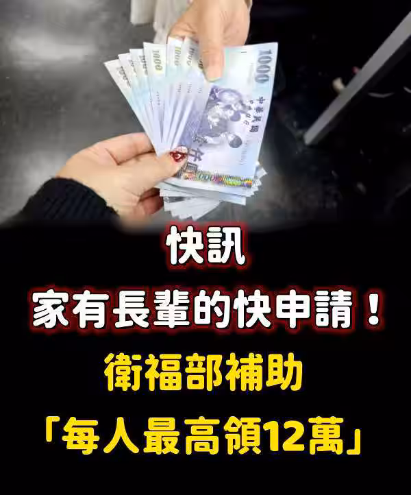 快訊/家有長輩的快申請!衛福部補助「每人最高領12萬」!