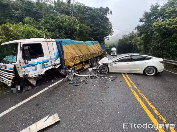 快訊/北宜公路嚴重車禍!特斯拉「攔腰撞貨車全毀」