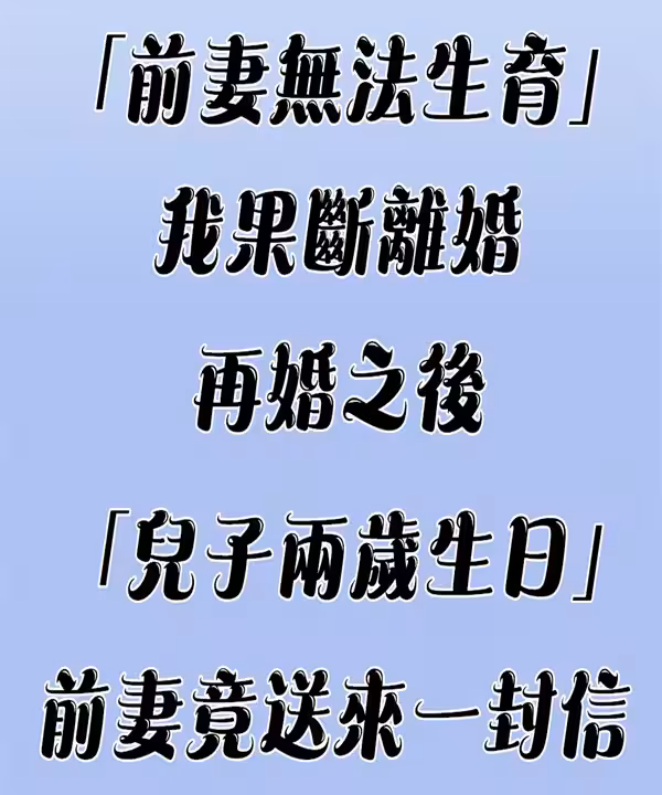 「前妻無法生育」我果斷離婚!再婚後「兒子2歲生日」前妻竟送來一封信!