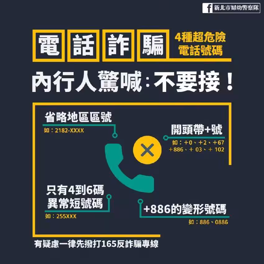 由於曾發生過有民眾誤信假冒郵局來電,被騙近900萬元,號碼開頭就是「+886」,內政部警政署「165打詐儀錶板」因此也曾強調「+886為境外來電,一定是詐騙電話」,呼籲民眾若接獲可疑來電,應立即掛斷,再撥打官網電話或165查證。