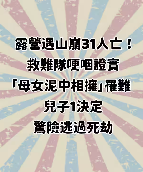 露營遇山崩31人亡 ! 救難隊哽咽證實「母女泥中相擁」罹難 兒子1決定驚險逃過死劫