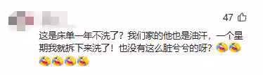 也有網友幽默地建議博主,「你老公掉色了,最好的辦法就是睡覺時給他套個塑料袋。