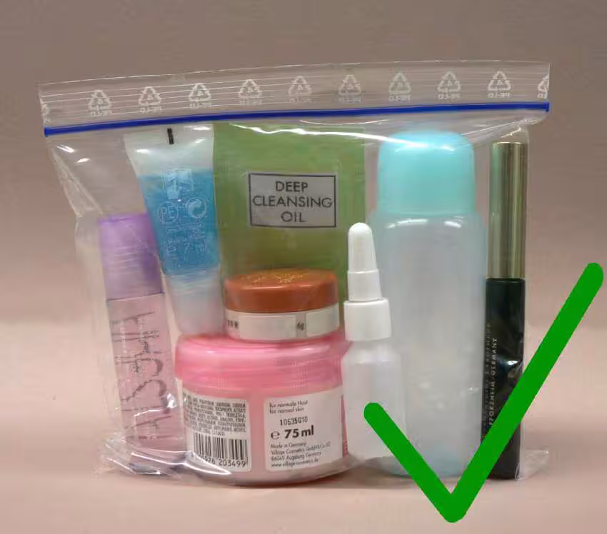 4. 每人限攜帶一袋 這項規定適用於如:牙膏、洗面乳、乳液、化妝水、香水、防曬、凝膠類護髮品,甚至是隱形眼鏡藥水! 注意:就算牙膏只有擠一半,只要包裝標示超過100毫升,也會被沒收!