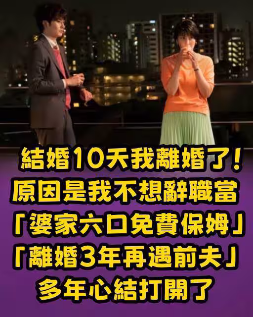 結婚10天後我失婚了 !! 原因是我不想辭職當「婆家六口免費保姆」,「失婚3年再遇前夫」多年心結打開了