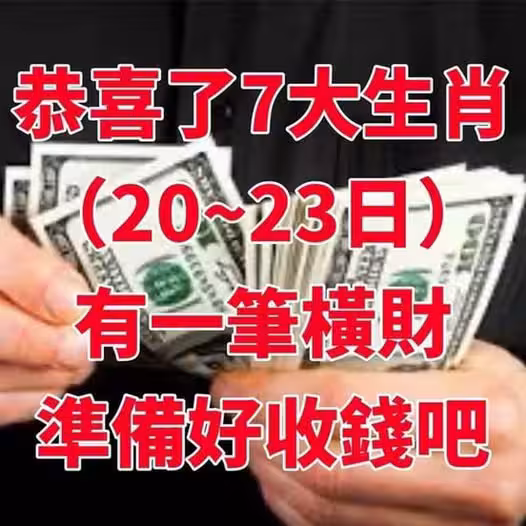 恭喜了7大生肖,在未來三天( 9月20~23日)即將有一筆橫財,準備好收錢吧