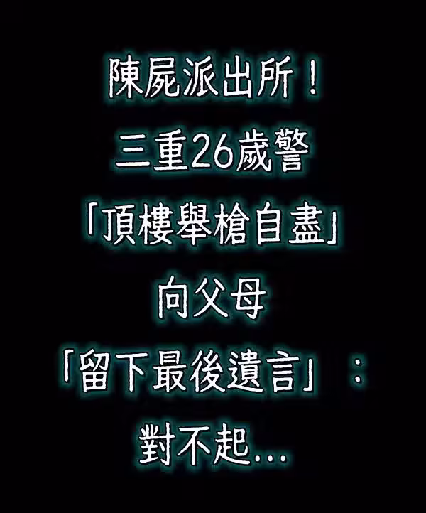 陳屍派出所!三重26歲警「頂樓舉槍自盡」 向父母「留下最後遺言」: 對不起...