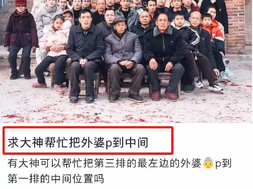 可是這位網友曬出的全家福卻讓人看到了一種新型排序方式,