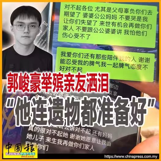 周三(8月20日)晚從公寓高樓墜亡的拉曼理工大學男生郭峻豪(21歲),自幼和弟弟因父母離異而跟隨祖父母同住長大,大伯、叔叔和姑姑對他兄弟倆愛護有加;其中,郭峻豪與姑姑郭女士感情最佳,二人每周都會通電話閒話家常數次。