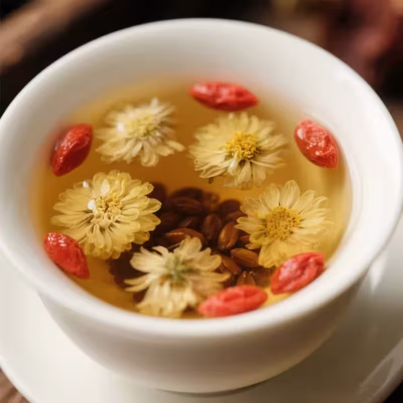 【功效】菊花清熱降火,枸杞滋補肝腎,決明子明目通便,三者搭配可緩解夏季肝火旺盛引起的眼乾、失眠、易怒等症狀,適合熬夜黨或用眼過度人群。