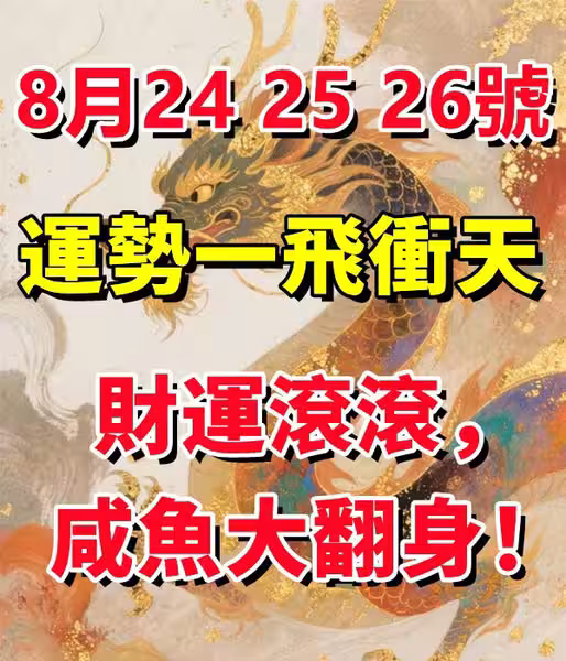 8月24 25 26號運勢一飛沖天,財運滾滾,鹹魚大翻身
