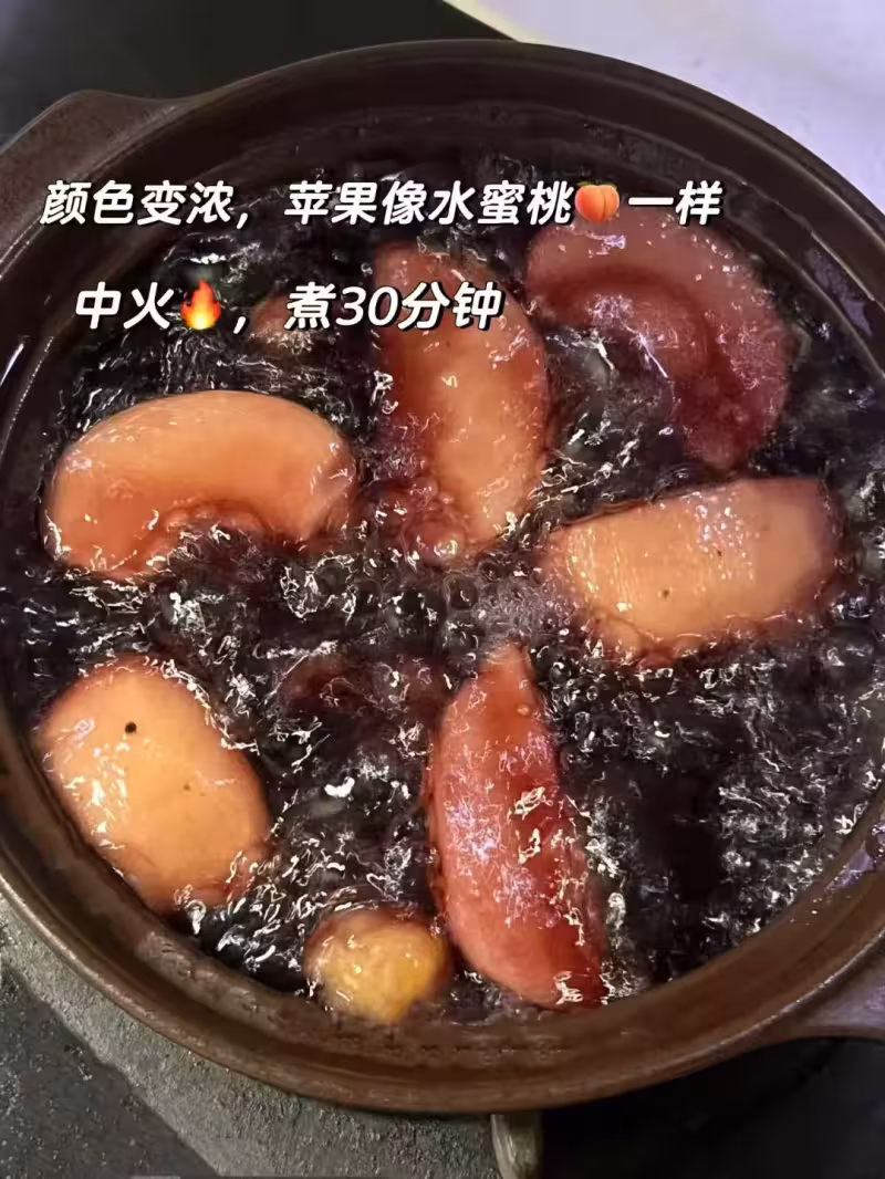 由於我不停地吃「蒸蘋果水」,導致臉蛋越來越紅潤透亮